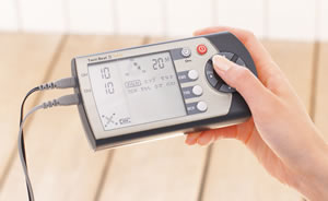 ツインビートご愛用者のお声の中で、ツインビートシリーズは「両手でしか操作出来ないの?片手で操作出来たらもっと便利なのにな〜」というお声を沢山頂きましたので、そのお声に応えるべくツインビート3ターボは片手でのカンタン操作が可能になりました!従来のツインビートシリーズでは、Ch1とCh2の出力操作を両手でしなければなりませんでした。ですが、ツインビート3ターボでは、Ch1、Ch2のそれぞれの出力調整から モードの切り替えまで、全ての機能を片手で行う事が出来ます!もう両手のでの操作は必要ありません。携帯電話と同じように、気軽にピピッと片手で操作。 コンパクトサイズなので、手の小さい女性でもカンタンに片手操作を行う事が出来ます。 |